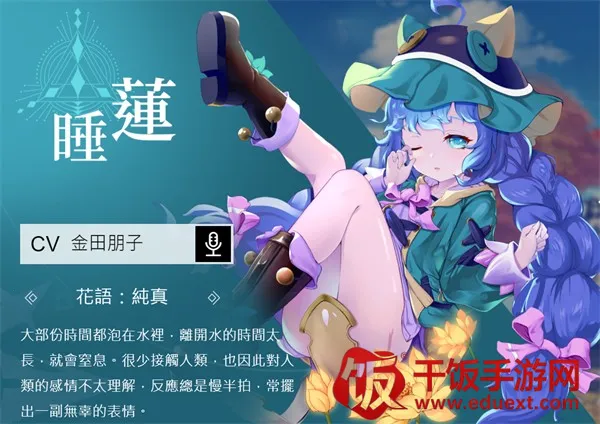 大部分时间都泡在水里,离开水的时间太长就会窒息,很少接触人类,也因此对人类的情感不太理解,反应总是慢半拍,常能摆出一副无辜的表情