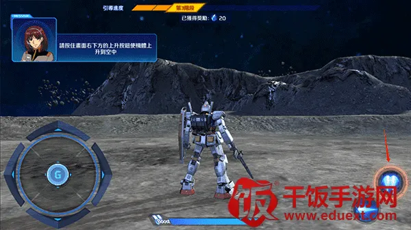 4、按住右侧的上升键,操控机甲升空,获取空中视野优势。