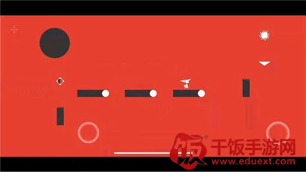 1、第一关,先从左到右跳跃,进入右边的白圈后等待画面变化,再跳跃到左边的白圈即可。