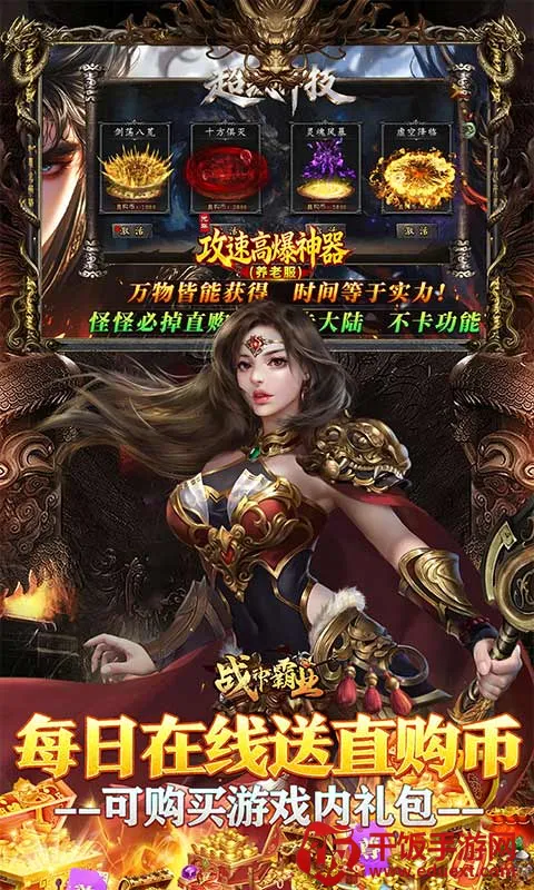 想玩传奇游戏的朋友们有福啦!战神霸业4职业传奇类游戏超棒!它有全新直购币白嫖版本,零氪党也能玩得超爽。上线就送新人豪礼,有万亿切割、千倍爆率,还能自动拾取和回收。所有物品本服产出,怪怪必掉直购币,不卡大陆和功能,能零氪通关散人称王。上线送全满豪华礼包和专属超牛称号,杀怪免费领骷髅鬼装升满级,提升海量切割属性还有强力buff,实力飙升。特色玩法功能多样,满足各种游戏需求,货币消耗转化为角色实力提升。还有单日大额充值福利、服务器冠名活动、永久累充活动等。BOSS系统丰富,竞技玩法多样,像附近的人挑战、王者争霸、血战矿洞、藏宝阁大冒险等。画面精美,职业经典,能让你轻松升级、打本爆装备、完成活动,和兄弟称霸全服,快来下载体验专属传奇之旅吧!