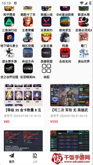 3、进入到首页汇集了很多的游戏账号