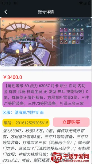 4、任意点开喜欢的游戏账号,点击立即购买即可