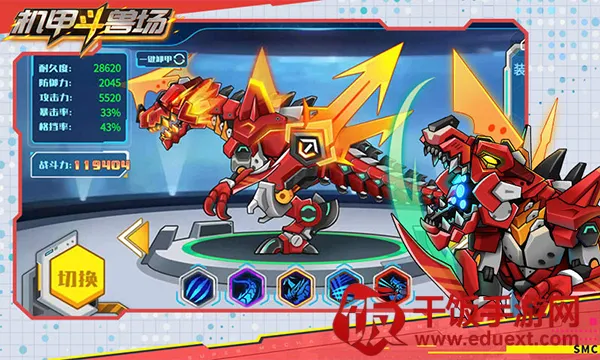 2、丰富机甲选择:玩家可以从一系列独特的机甲中进行选择,如三角暴龙、装甲暴龙、金毛狮王、机械翼龙、曙光女神以及最新的六道赤龙等,每款机甲都有其独特的能力和属性。