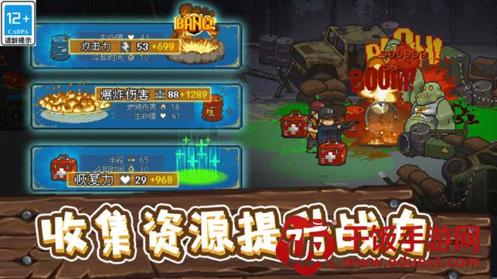 - **资源收集与养成**:收集物品、赢经验值,重建大巴、升级单位和车辆。通过升级解锁兵种,提升实力应对更强僵尸。