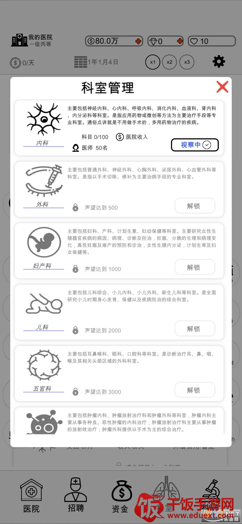 2. 升级医院与设备:不断提升医院的等级和设备,以应对越来越复杂的病例,更好地治疗病患。