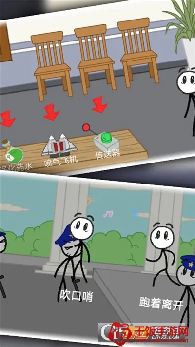 4. 轻松画风:经典火柴人形象,诙谐轻松的二次元画风,操作界面友好。
