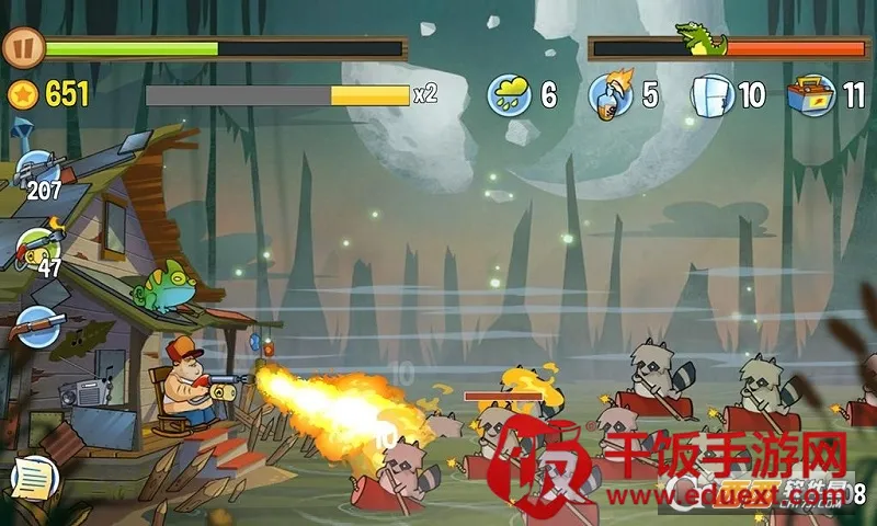 想知道沼泽派对里怎么打boss吗?这款游戏绝对能满足你!它是一款超有趣的策略塔防游戏,有着鲜明夸张的卡通美术设计和带感的乡村摇滚配乐。你会化身守护沼泽小屋的大叔,用7种特色枪械抵御诡异生物。这里有个性爆棚的角色,像乔、韦尔德、毛毛大叔和毛奶奶等。武器系统丰富,针对不同敌人精准打击,还能自由切换操控角色。敌人种类繁多,鳄鱼、乌龟、浣熊等各具进攻套路。游戏里还有各种强力道具,炸药能炸伤单个敌人,燃烧瓶可群体灼烧,冰箱能冻结敌人,停车标志能强制暂停敌军,石油可引发连锁爆炸,电池能电击涉水敌人,酸雨能持续侵蚀,臭能污染水域让敌人窒息。掌握这些道具用法,再结合合理的枪械使用和布局,就能在面对boss时应对自如,成功保卫家园,快来下载体验这场刺激的守家之战吧!