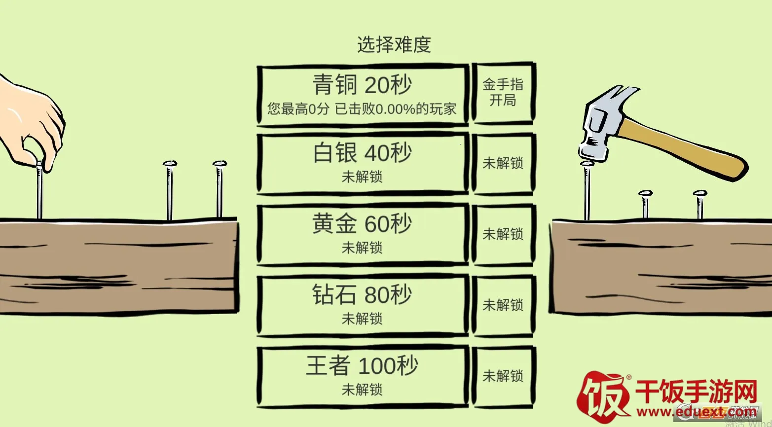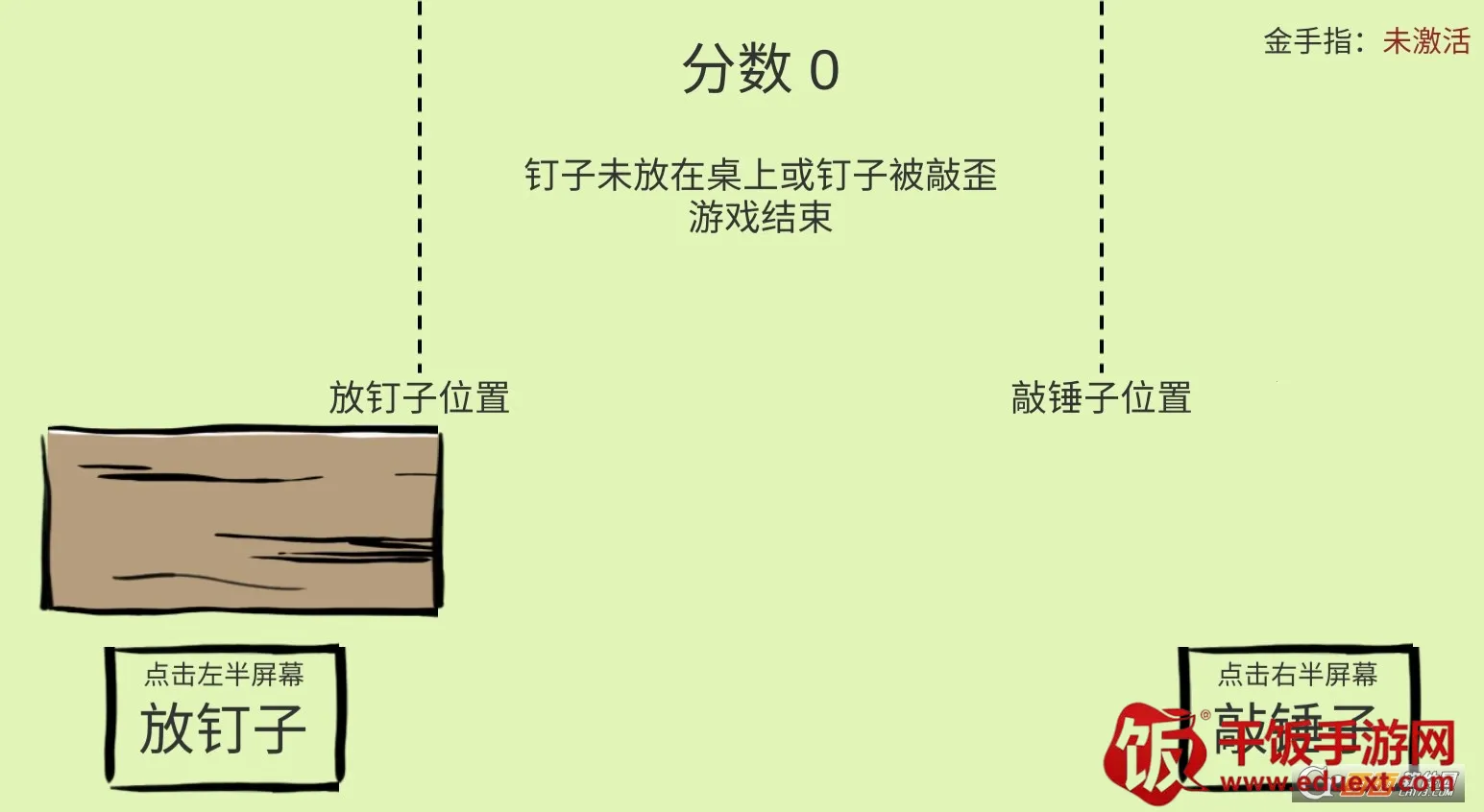 敲钉子是一款画风简约的休闲点击游戏,玩家要边放钉子边用锤子敲进木板,失误即失败。支持多难度选择,有金手指功能。画面清新、音乐欢快,操作简单易上手,适合消磨时光,快来体验。