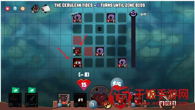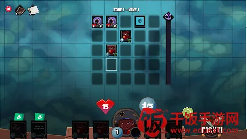 1、游戏中拖动下方的角色卡牌即可放置到格子中,格子周围的红色区域则是他的攻击范围。