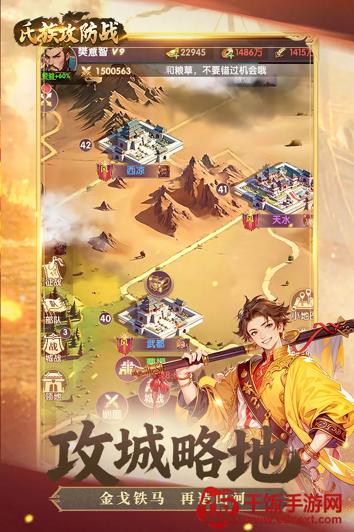 氏族攻防战(攻城三国手游)是战斗策略游戏,玩家扮演诸侯,可招兵买马、攻城略地,率领万千兵马征战强敌,有史诗战役,官网版能招揽武将,创建强大军队,解放座座城池。