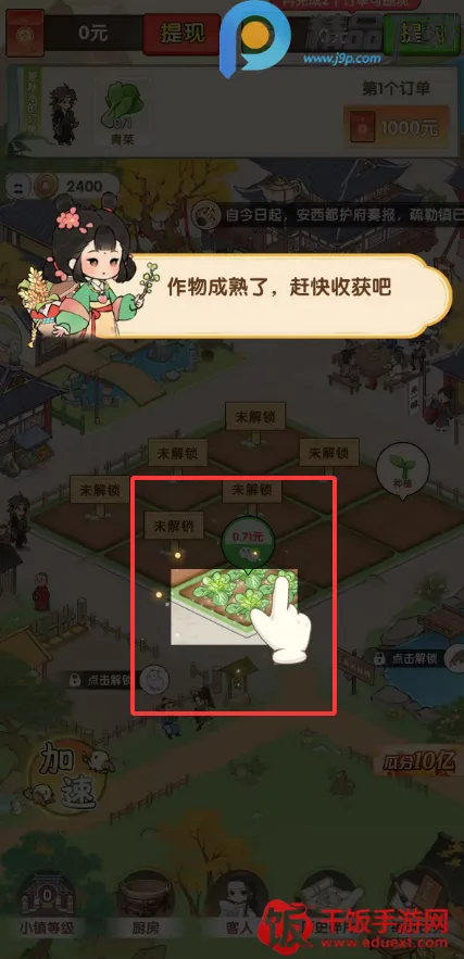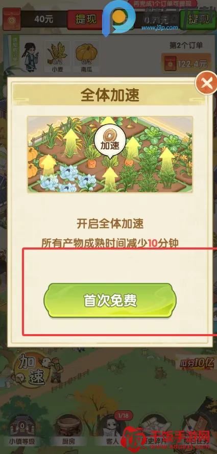 2、按照订单中的植物进行种植,免费开启全部作物加速生长