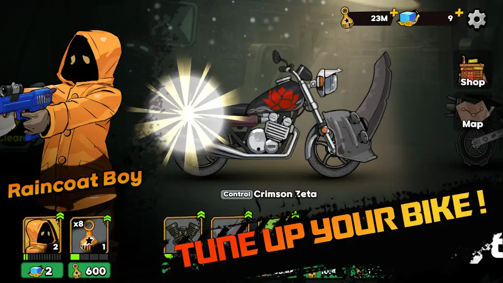 此外,游戏还有丰富多样的任务挑战,每个关卡设计精巧,完成任务可解锁新区域、提升角色能力和摩托配置。多样化角色各具特色,摩托车也支持全面升级和个性化定制。购买高级版本后可享受无内购无广告的完整畅玩体验,全心投入这场极速与生存的终极对决。