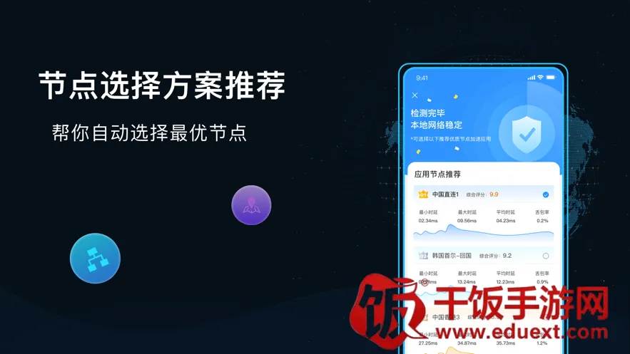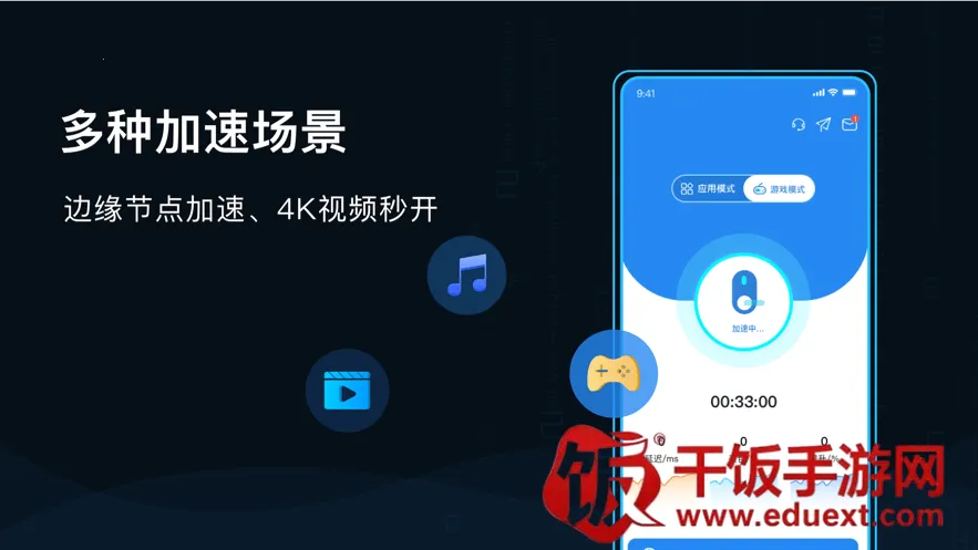2. 智能专线降低延迟:游戏分配专属节点,WIFI4G随心切换,网路零束缚,有效降低延迟,让游戏更加流畅,告别卡顿掉线等问题。