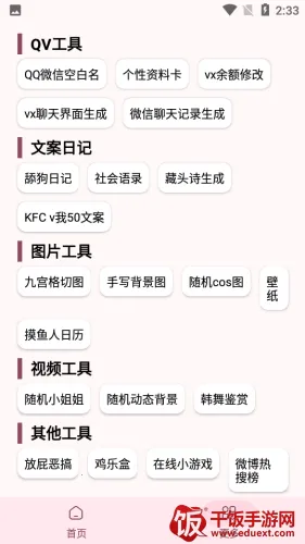 工具界面,为用户提供了藏头诗生成,社会语录, qq微信空白名,在线工具,在线等超多功能。