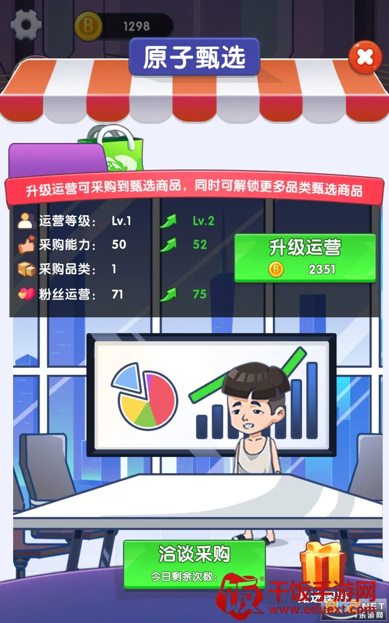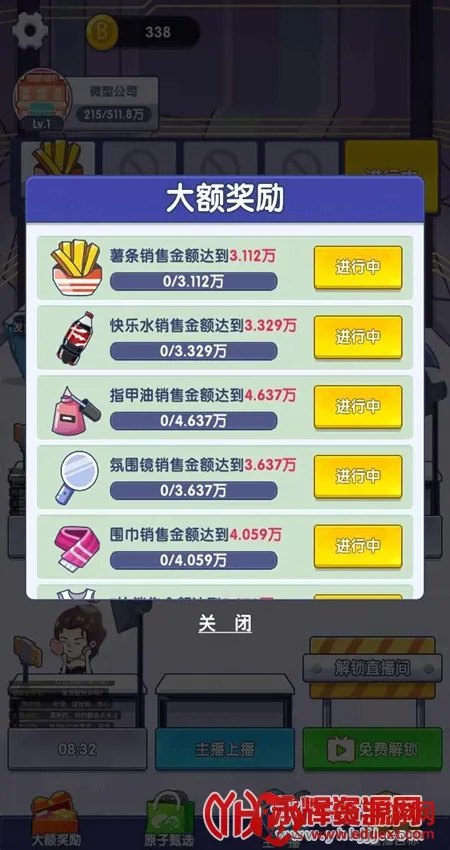 2、自由直播带货:玩家能够自由地进行直播带货,从中轻松获得丰富的经验奖励和资金收益,快速提高平台等级,扩大规模。