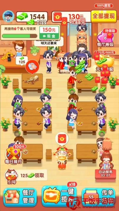 我的饭店红包版是一款休闲益智经营游戏。以饭店经营为主题,Q版卡通画风。玩家扮演老板,照料顾客、烹饪佳肴赚金币升级餐厅。操作简单,亮点众多,还有多样特色与优势,含多种技巧助玩家打造美食天堂。