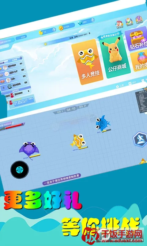 1、多人竞技体验:游戏结合吃鸡玩法设计,玩家控制小鱼参与生存竞争,躲避毒圈和大鱼威胁,在充满挑战的海洋环境中体验弱肉强食的生存法则,带来刺激的竞技感受。
