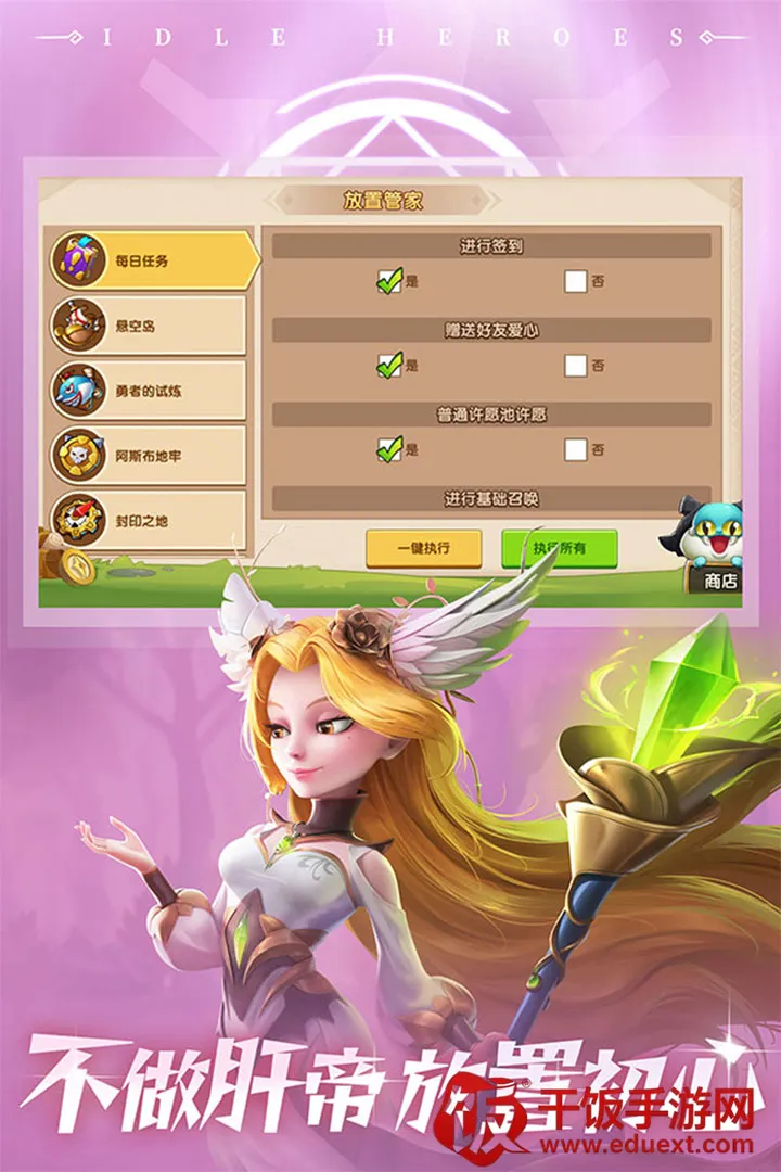 3. **丰富游戏内容**:涵盖放置战斗、地下城探索、英雄任务、收集养成等。还有幻境之塔、竞技场、公会玩法等精彩内容,带来无尽游戏体验。