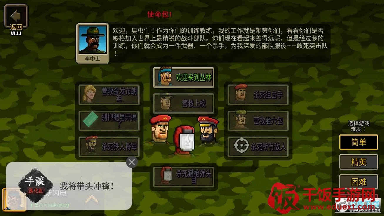 超强敢死队汉化版游戏超好玩!它是一款像素风射击游戏,采用上帝视角俯视战场。玩家扮演敢死队成员,荷枪实弹完成各种任务。游戏特色满满,有经典像素画面,还有天气预报般的子弹风暴、手榴弹。武器超丰富,榴弹机枪、火箭筒、火焰喷射器等应有尽有。玩法多样,能俘虏敌人助战,点击角色标志可提升技能。你要深入敌后救同伴,壮大队伍实力,摧毁敌人基地。操作简单,左边方向键操纵人物,右边瞄准射击。游戏关卡刺激有趣,场景多样,节奏快,背景音乐带感。而且它已经全面汉化,ui页面都是简体中文,国内玩家能毫无障碍地尽情享受游戏,在这像素世界里体验热血枪战对决,感受枪林弹雨的刺激,快来试试吧!