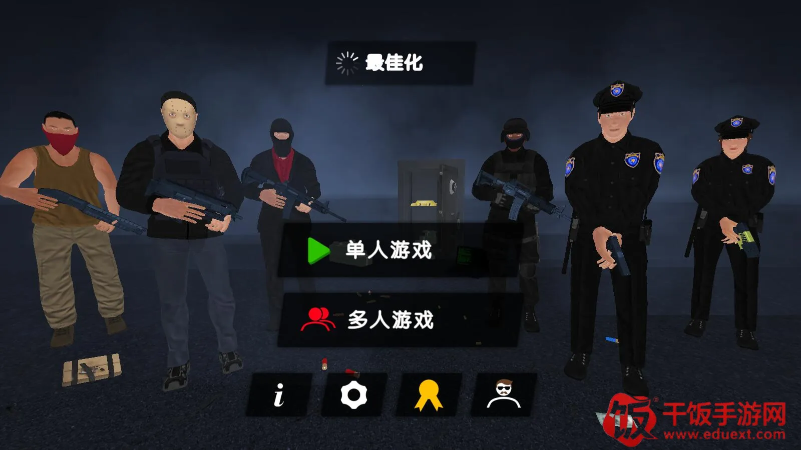 警察和强盗模拟器是一款警匪对抗游戏,玩家可自由选警察或强盗身份。有单人、双人模式,多样任务与射击结合,画面音效逼真,操作易上手,支持单机和在线匹配,策略与反应完美结合,带来刺激体验。