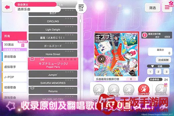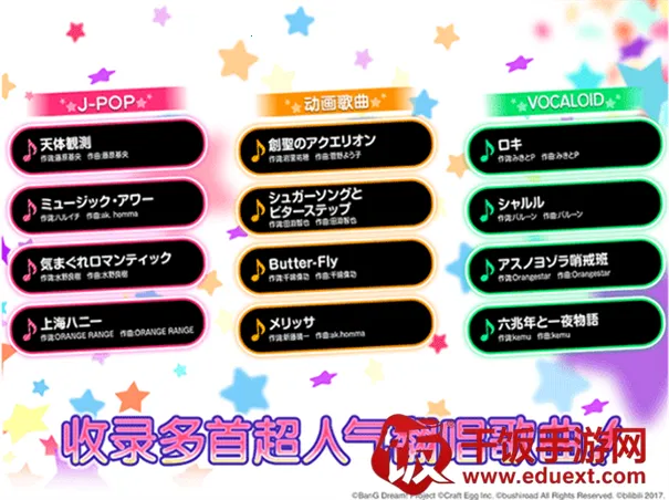 1、丰富音乐曲目:游戏内歌曲创作和改编由日本著名音乐制作团队ElementsGarden操刀。除BanGDream!企划歌曲外,还收录大量原创曲和耳熟能详的ACG经典曲目翻唱版,带来动听音乐盛典。