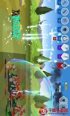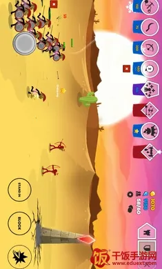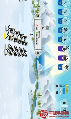 1、招募矿工来采集更多黄金,训练棍棒手,逐步组建属于自己的军团