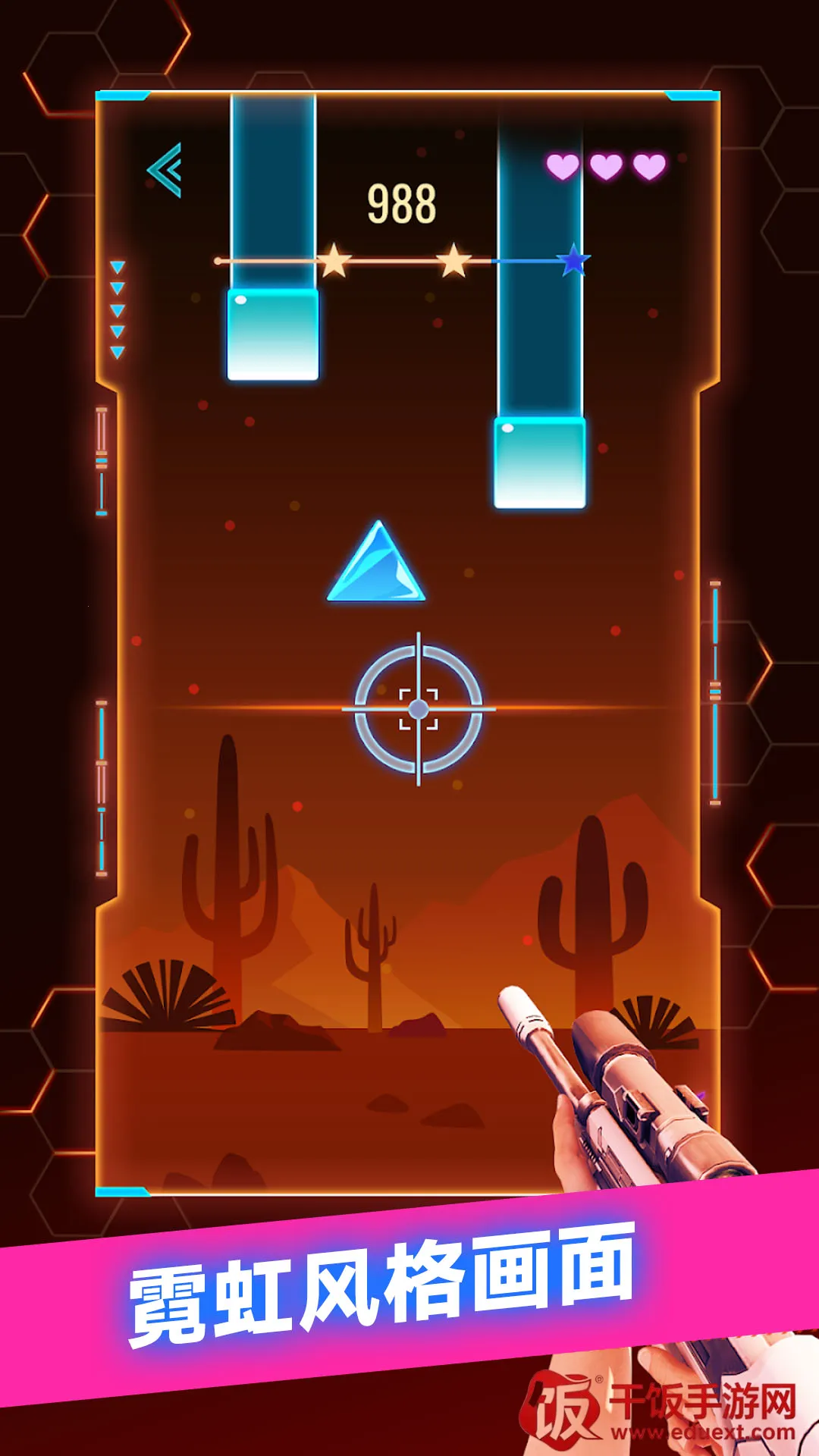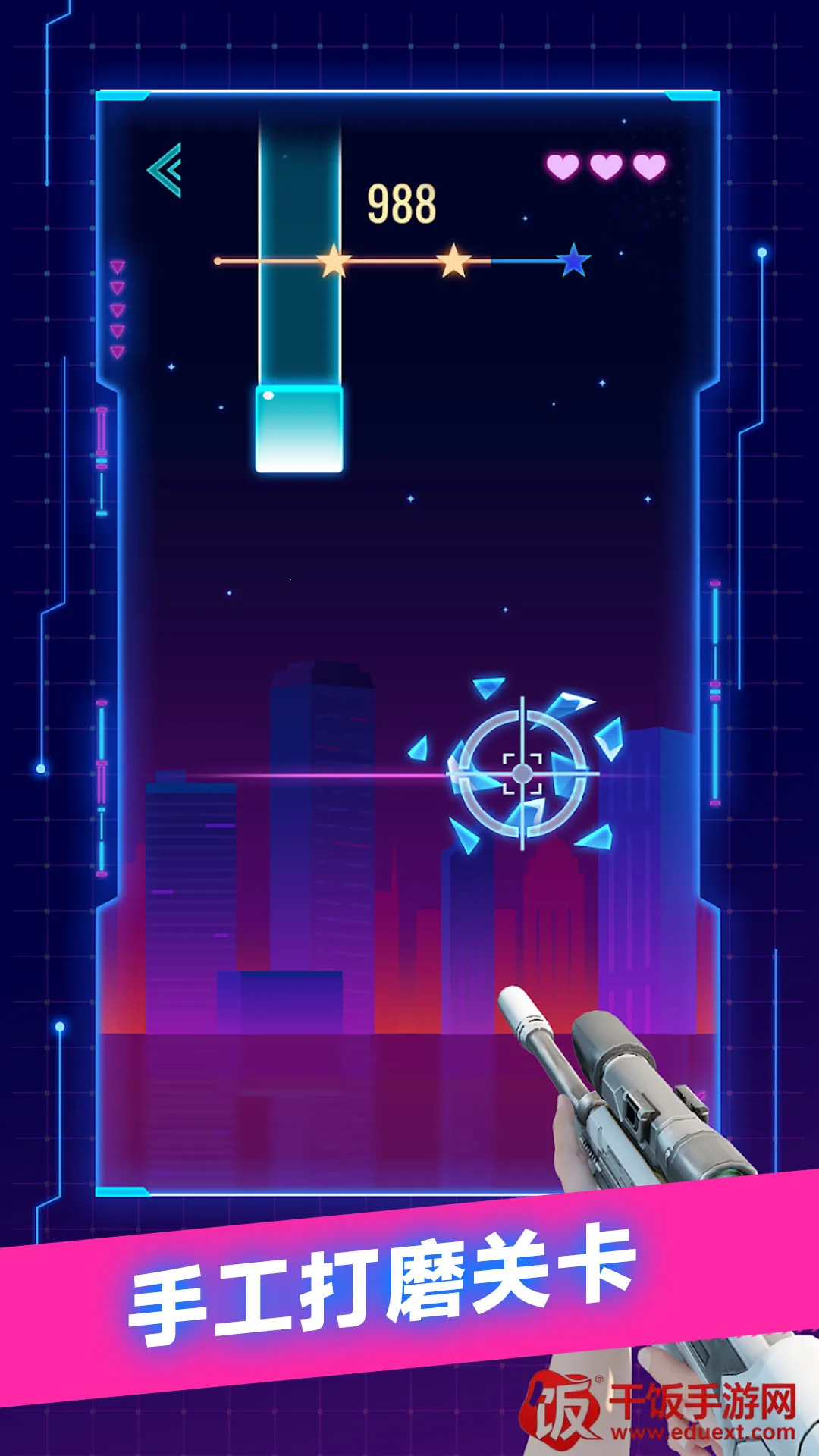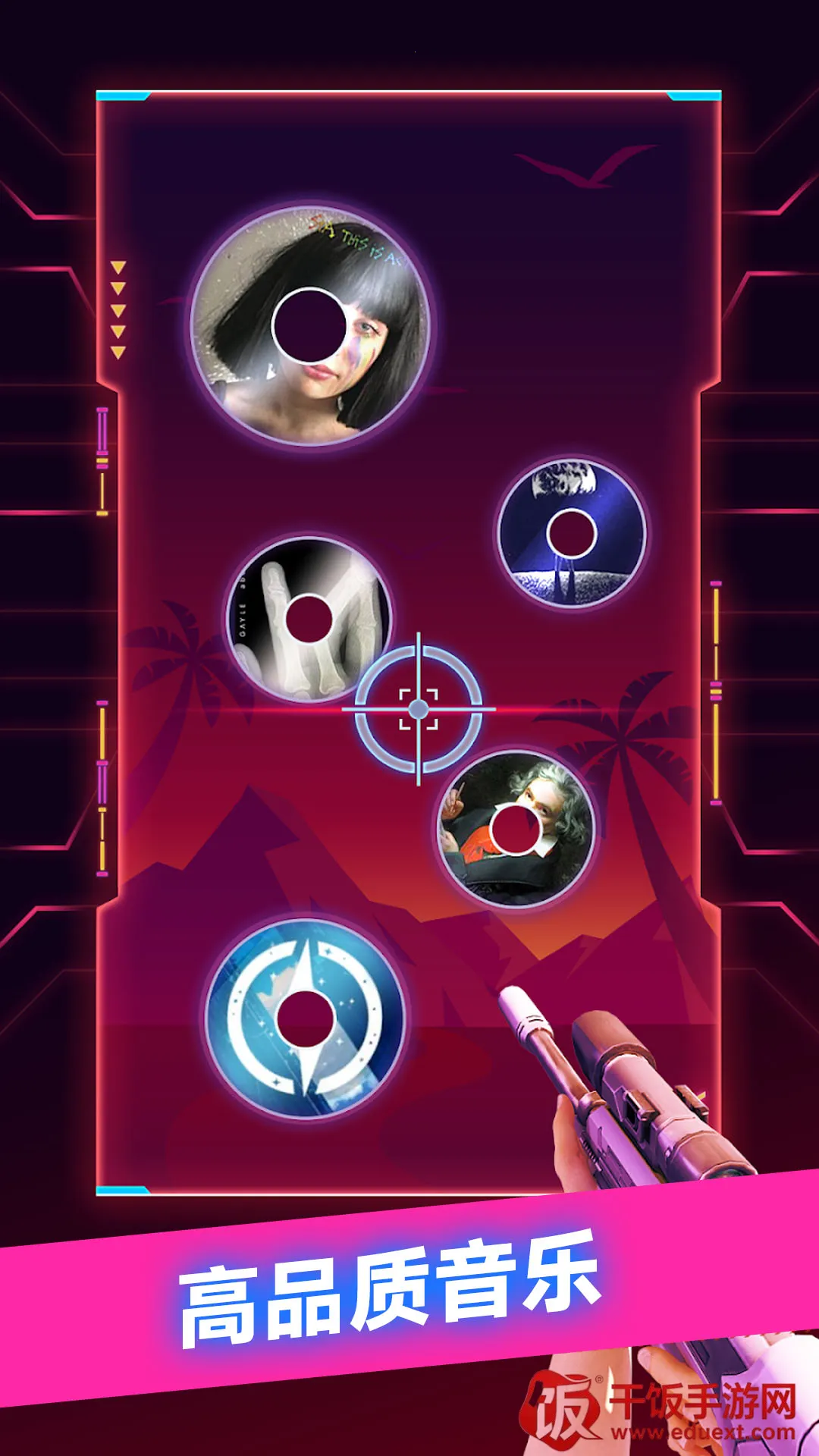它还设有全球实时排行榜,能与各地玩家竞技;采用未来科技风视觉设计,操作简单易上手,支持离线游玩。这不仅是反应与射击的试炼,更是在旋律中释放激情、享受节奏的独特旅程。