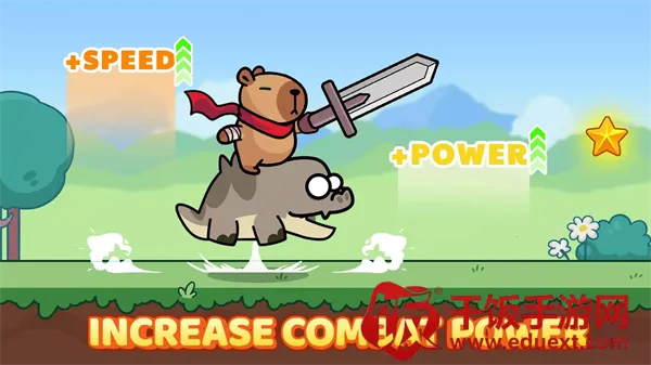 1、冲刺体验超爽:获得加速道具后,卡皮巴拉会进入冲刺状态,速度翻倍还能暂时无敌,那种超爽的冲刺感让人玩起来停不下来。
