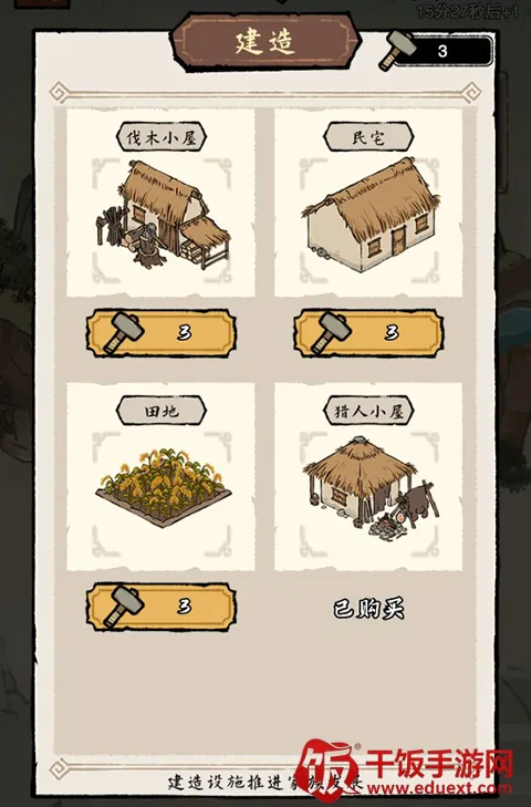 6、收集到足够用的锤子就可以用来建造建筑,打造自己的家园啦。