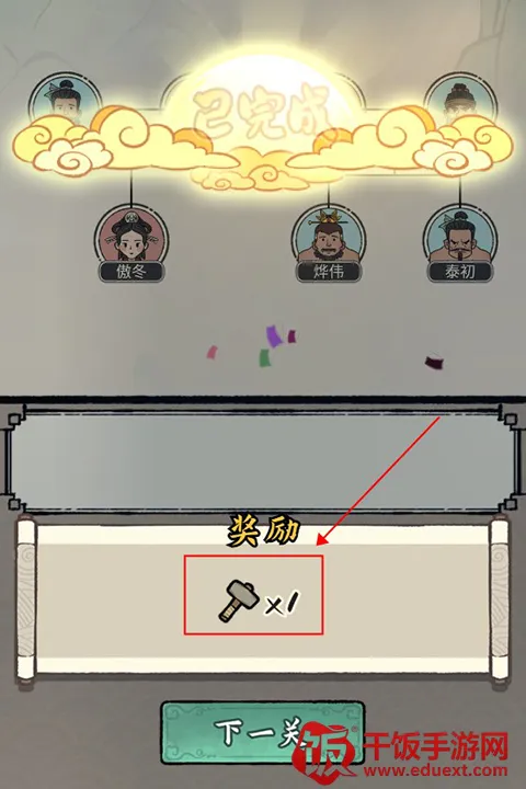 5、所有圆框正确填入就可以通关并获得锤子奖励啦。
