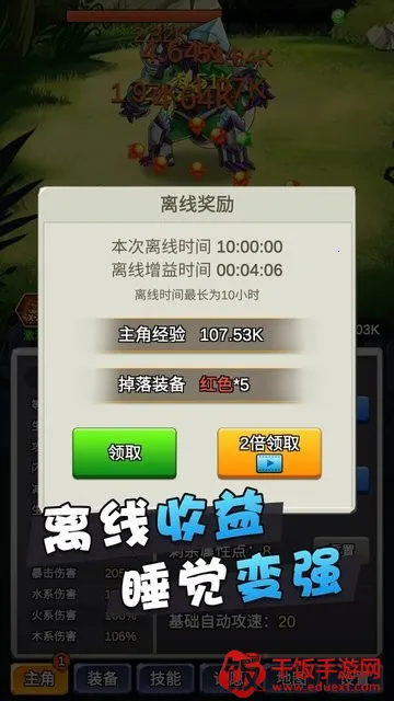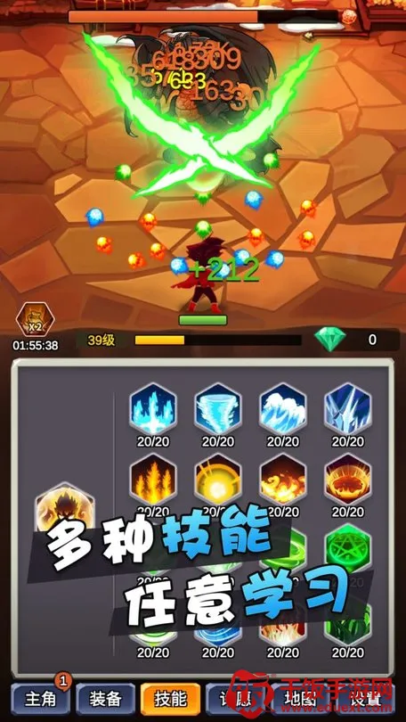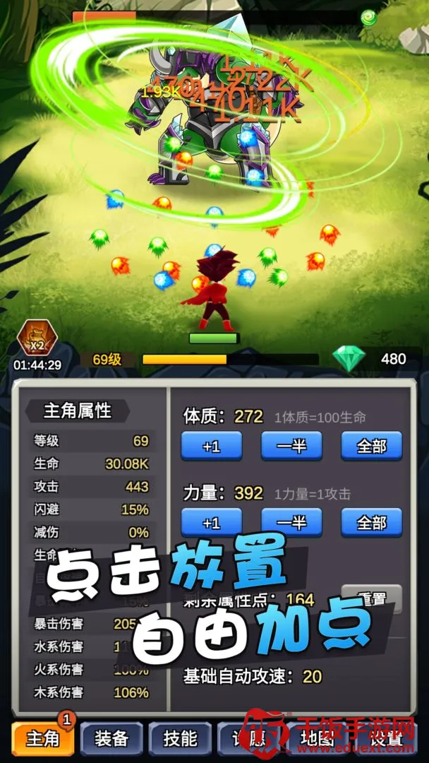 攻略方面,新手可先全点技能一级再加攻速,基础自动攻速最高到20次/秒,结束开荒期后开始加技能。装备先凑迅捷套升级快,之后过渡到反击或属性套。刷钻石可调回第一关亲自上场,每日许愿最多50次。