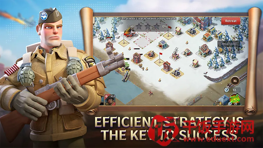 2. **沉浸体验**:游戏以近现代背景为依托,拥有卡通风格画面和音效,多个文明势力展现各自特色兵种和传奇将领,让玩家沉浸式感受不同风格战斗。