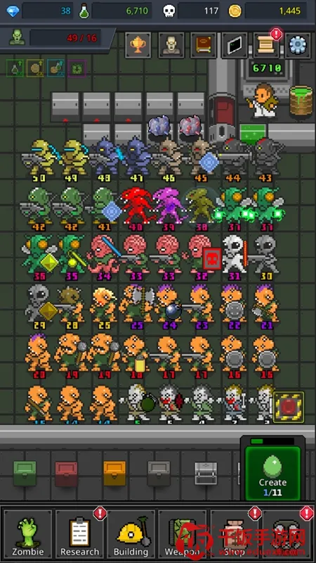 1、玩法创新独特:玩家化身生化博士培养僵尸军队,通过合并僵尸提升等级,开发更强僵尸,玩法新颖有趣。