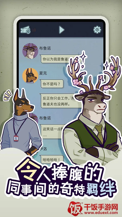 《动物公司》是一款超有趣的互动式温馨职场视觉小说游戏。在这里,你将扮演制药公司新人销售豪尔,身处于满是毛茸茸同事的动物公司。游戏采用短信风格,以小说对话方式展开,生动独特的半兽人角色超有魅力。你可以根据喜好自由选择不同路线,每次选择都会影响剧情发展,带来不同结局,有着7条主要剧情分支呢。而且游戏过程轻松,只要读下去就能看到结尾,能让你放松身心,缓解压力。你还能自由模拟真实办公室生活,与同事和谐相处。随着故事推进,剧情跌宕起伏。游戏画面是美丽的水彩风立绘,还有35张游戏插画可收集。另外,它无需付费,看广告就能获票券。如果你喜欢剧情类游戏,想体验独特的职场故事,就快来下载《动物公司》吧,保证能给你带来不一样的乐趣!