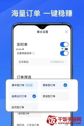 2、订单稳定,连接多渠道:连接多渠道乘客,订单来源稳定,奖励丰厚,结算灵活,接单出行简单便捷。