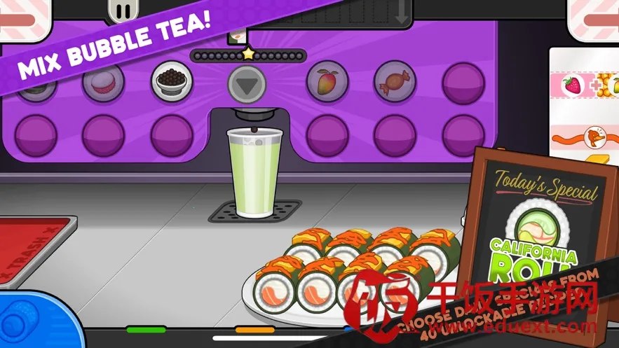 丰富多样的玩法:可自定义角色,从学习制作寿司开始,根据客人要求完成订单,完成一定关卡后还能解锁更多有趣玩法,比如多角色协同操作,分工处理食材准备、料理制作等任务,提升运营效率,解锁多线经营的趣味与挑战。
