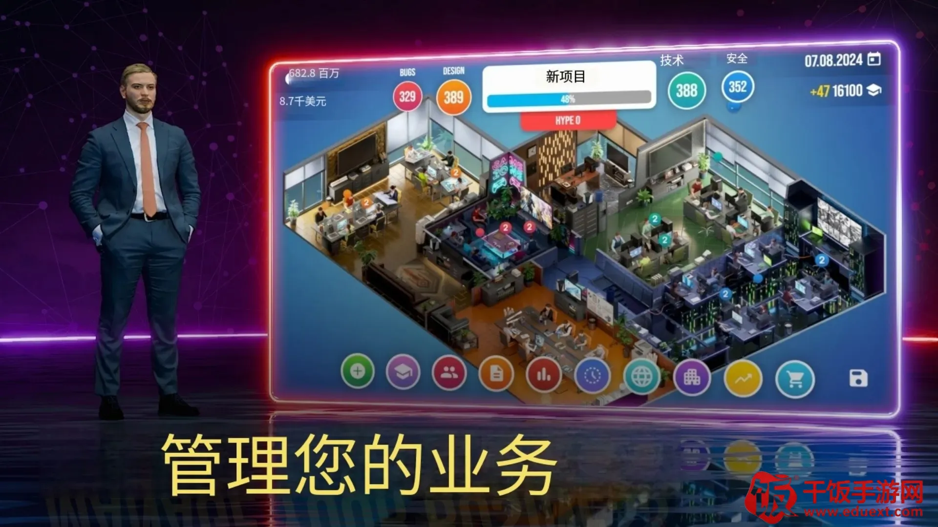 下载安装后进入游戏,你能选择教程熟悉玩法。先创建主机或游戏,比如从家庭主机开始,编辑完成后定价销售。回到办公室,员工进行开发产生积分,积分越多质量越高,还能创建副本数量实现自动生产。游戏具有历史模式,控制台创建、营销推广、研究开发等丰富特色,还有自己的在线商店和办公室管理内容。你可以不断壮大公司,做出战略决策,建立强大的游戏帝国。