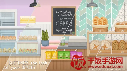 3. 能解锁各种面包店升级,从小费罐到零食冰箱等,不断扩展店铺规模。
