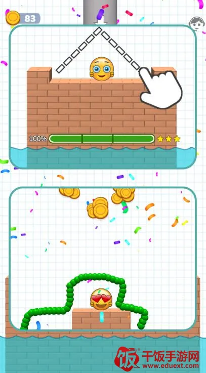 玩法很简单,当蜜蜂逐渐弥漫,你要画线保护黄豆人。成功坚持到过关,就能赚取金币开启新挑战。