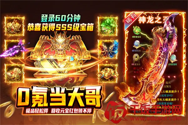 3. 多元玩法刺激:激战火龙尸霸等BOSS,野外畅爽PK,神装击杀就爆。还有十二生肖、卧龙山庄、神龙帝国押镖等多种精彩玩法,带来新鲜刺激战斗体验。