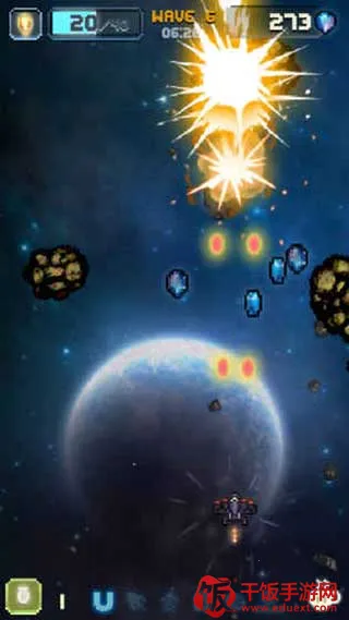 空中大师像素射击是一款怀旧复古风的空中射击手游。以地球空间站为背景,玩家操控战机迎战100波敌军。战斗推进时背景画面变换,空中俯瞰视角能览太空美景。玩法借鉴传统雷电类射击游戏,采用经典街机模式,手指拖动战机移动攻击,还能收集宝石加强火力、升级解锁战机。