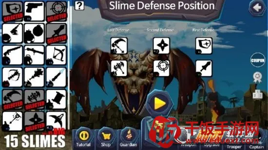3、守护者祝福助力:设有守护者,不同守护者会为史莱姆提供不同祝福,等级越高祝福越强,升级需兼顾武器与守护者,二者协同守住防线。