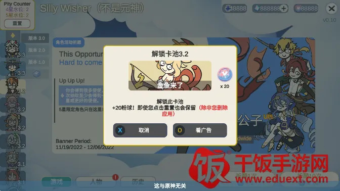 2. 还原抽卡机制:完美还原原神中的各种抽卡游戏,让你体验原神原始抽卡机制,检查自身抽卡运气。