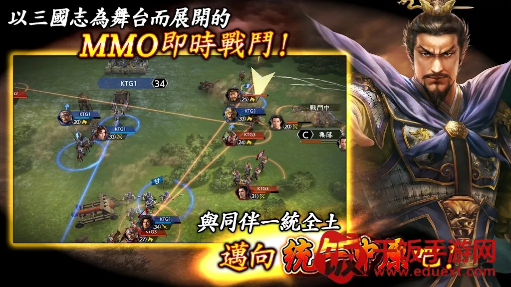 2. 即时战斗体验:采用MMO即时战斗模式,玩家能真实感受三国乱世龙争虎斗。可对出征部队即时指示,根据战况自由更改目标,与武将完美搭配作战,这是胜利关键。