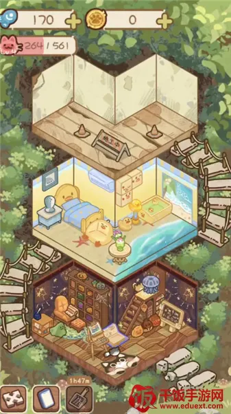 3、多样日常经营:需完成铲屎、清洁、采集食材、制作料理等任务获取金币,解锁更多扩展层数,玩法丰富。
