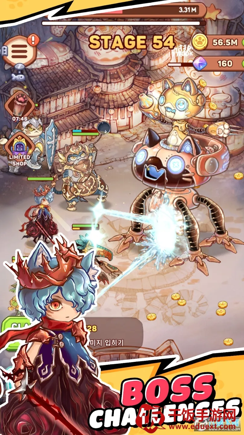 喵喵战士是一款放置冒险游戏,核心特色鲜明。你将成为猫咪守护者,带领猫战士对抗邪恶的喵喵公司,拯救濒临灭绝的梦托邦。可招募和升级猫战士大军,每个都有独特外观与能力,升级能释放全部潜力。创新的放置类玩法,融合放置游戏本质与角色扮演机制战略深度,即便不积极玩也能进步征服。还有策略战斗,带领猫战士激战,发挥战术能力,制定巧妙策略,利用独特技能击败敌人,拯救Mewtopia王国,体验非凡冒险。