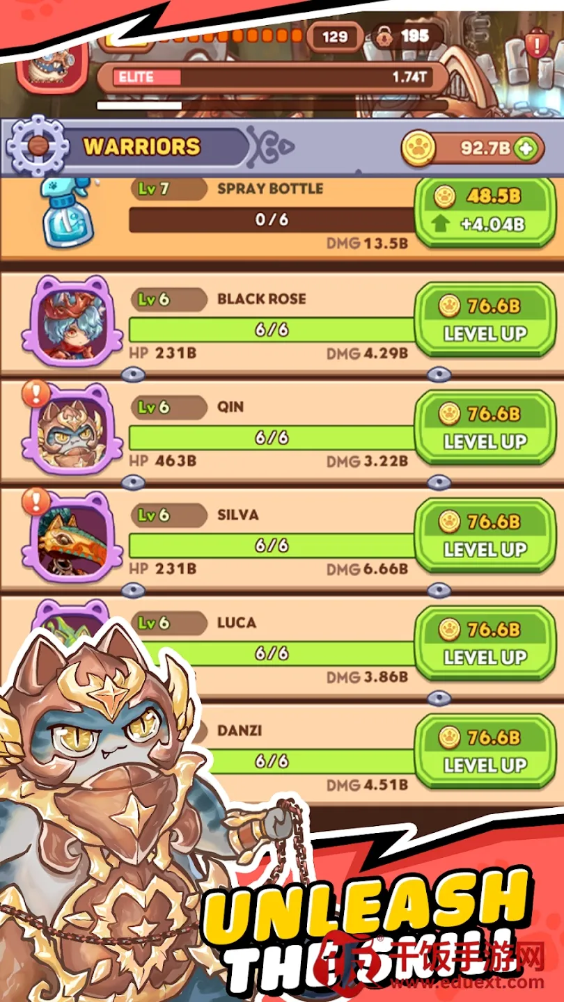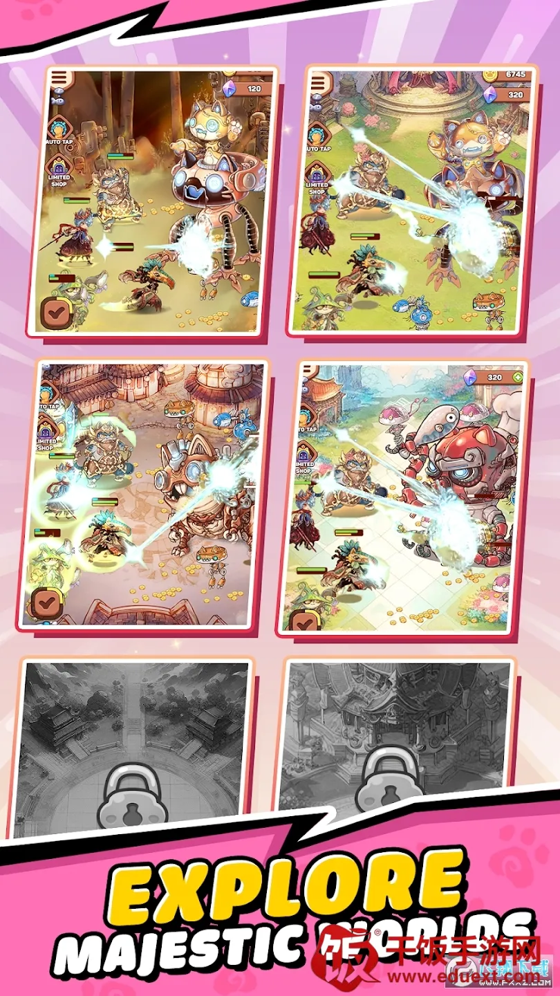 1. 独特角色养成:可招募并升级猫战士大军,每个猫战士都有独特外观与能力,升级能释放全部潜力,打造强大战斗阵容。