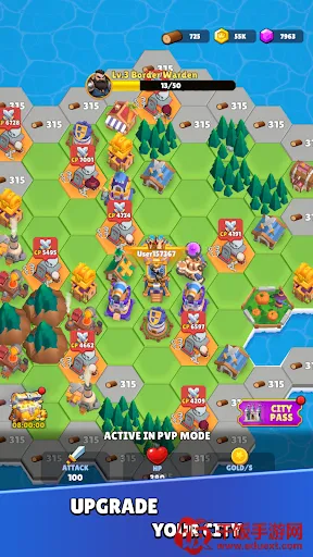 3. 独特玩法体验:占领金矿获取金币,翻转土地解锁战士和防御塔,派遣战士攻击、防御塔抵御,通过攻防占领对手领地获胜。