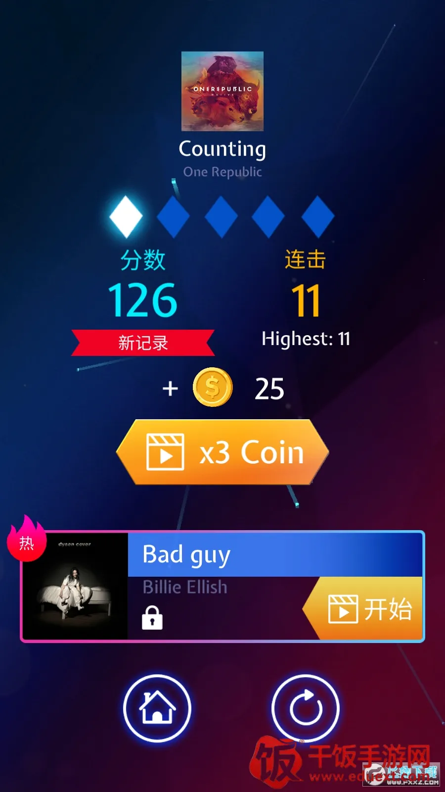 3. 关卡难度递增:每个关卡难度会随音乐节奏差异相应调整,大量关卡逐步解锁,挑战从轻松逐渐升至王者级别。
