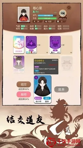 1、卡牌种类丰富多样,角色卡、功法卡、法器卡等,每张卡牌属性技能独特,可自由搭配,满足多样修仙需求。
